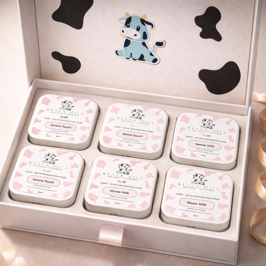 👉 Les 6 gels sont ensuite envoyés dans une box premium BLACK MILK au prix exceptionnel de 100€ HT